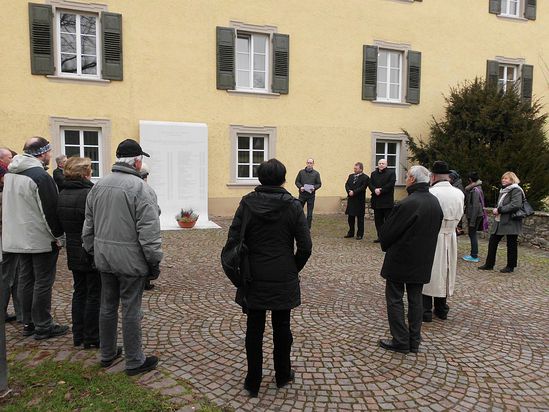 Im Anschluss folgte eine Schweigeminute. Nachdem die Versammelten einen Blumenstrauß vor dem Denkmal niedergelegt hatten, bestand die Möglichkeit, die Ausstellung über den jüdischen Künstler Hermann Fechenbach im Deutschordensmuseum zu besuchen, wovon zahlreiche Anwesenden Gebrauch machten. Die Führung übernahmen der Vorsitzende der SPD- Gemeinderatsfraktion, Klaus- Dieter Brunotte, und der Heimatforscher Hartwig Behr.