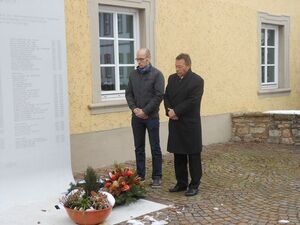 Bad Mergentheim. Nur die Pflege von Toleranz und die Achtung der Menschenwürde aller Menschen schützen vor einer Wiederholung der nationalsozialistischen Verbrechen. Das betonte Oberbürgermeister Udo Glatthaar am Auschwitz-Gedenktag. Die Gedenkstunde für die jüdischen Opfer des Nazi-Terrors in Bad Mergentheim und seinen Ortsteilen fand am Mahnmal im äußeren Schlosshof teil. Veranstalter war der SPD-Ortsverband der Kurstadt, gekommen waren aber auch Vertreter der anderen Gemeinderatsfraktionen, der Stadtverwaltung und der Bürgerschaft, insgesamt rund 40 Personen.